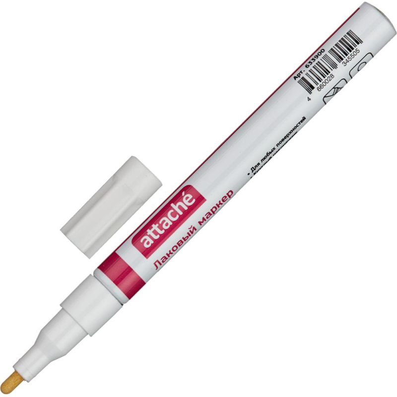 Маркер промышленный лаковый Attache, цвет чернил - белый, дает толщину линии письма 2 мм. Количество краски - 4 г. Предназначен для непрозрачной маркировки практически всех материалов, например, стекла, пластика, дерева или металла. Особенно подходит для темных и прозрачных материалов. Чернила маркера с лакирующим эффектом. Водостойкий, быстро сохнет. Поток чернил регулируется клапаном. Алюминиевый корпус. Толщина линии - 2мм. Наконечник изготовлен из Японского качественного материала.Инструкция по применению маркера:1. Перед использованием хорошенько встряхнуть с закрытым колпачком.2. Снимите колпачок, прижмите наконечник к поверхности, надавите и удерживайте, пока не проступит краска.3. Применять после того как убедитесь, что вытекает исходный цвет. Предостережения: плотно закрывайте колпачок после применения, держать маркер вдали от огня, прямые солнечные лучи вызывают обесцвечивание.