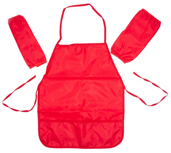 Накидка на завязках с нарукавниками ПандаРог для уроков труда, 3 кармана, однотонная, красная
