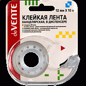 Клейкая лента канцелярская "deVENTE" прозрачная, 35 мкм, 12 ммx10 м, пластиковая втулка, в пластиковом диспенсере