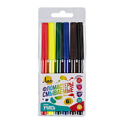 Корпус фломастеров изготовлен из первичного полипропилена, который продляет его срок службы. Колпачок фломастера вентилируемый, что соответствует мировым стандартам безопасности. Такой тип колпачка способствует прохождению воздуха при случайном попадании в дыхательные пути малыша. Пишущий узел конической формы антиударный и надежно зафиксирован в основании корпуса, наконечник не провалится внутрь даже при сильном нажатии. Стержень выполнен из микрофибрового волокна, он износостойкий и обеспечивает нанесение четкой линии. Чернила фломастеров не высыхают и не имеют запаха, произведены на водной основе и пищевых красителях, благодаря чему они безопасны и легко смываются с рук, одежды и большинства поверхностей.