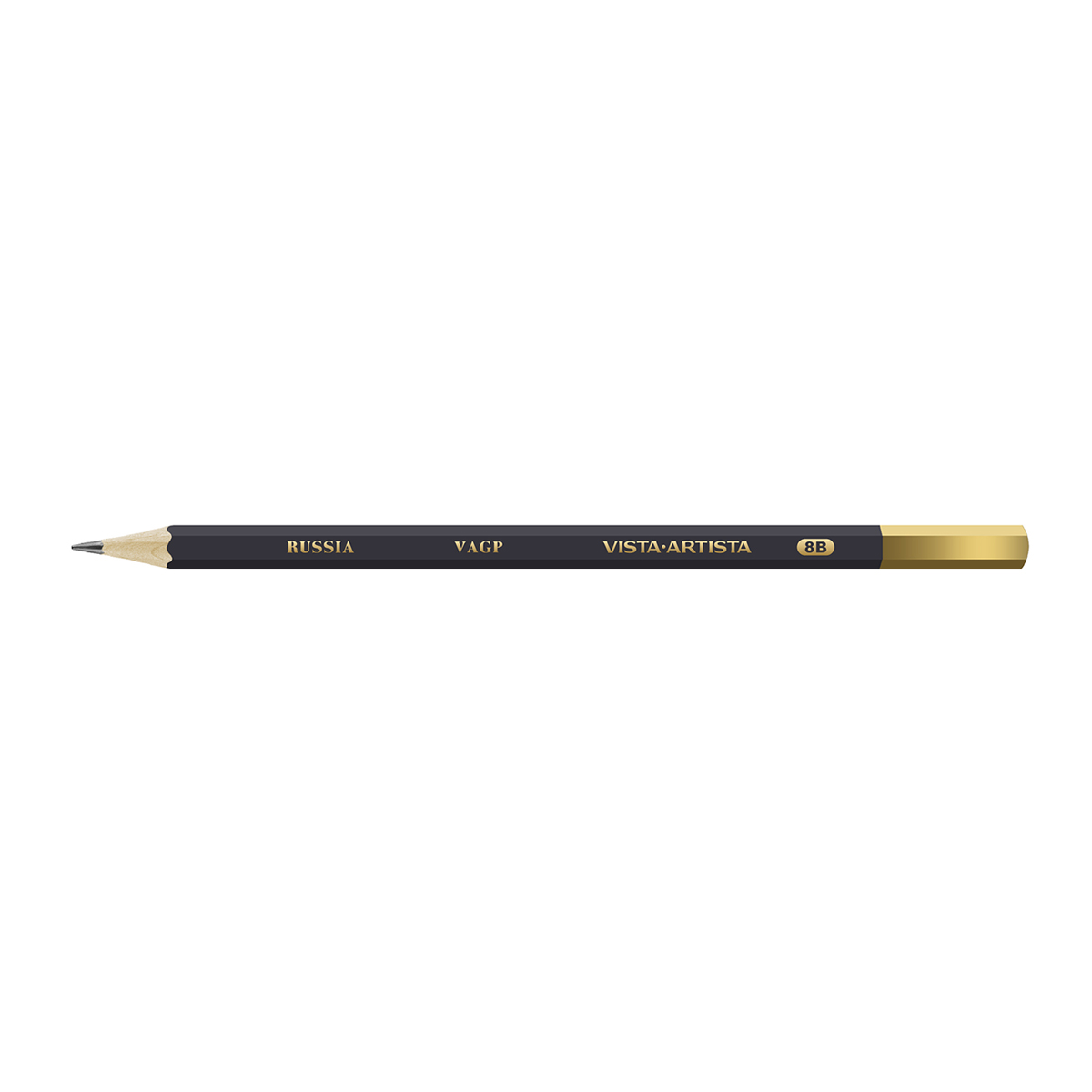 "VISTA-ARTISTA" VAGP Шестигранные карандаши наивысшего качества, идеальный инструмент для рисунка, эскизов и чертежей. Корпус изготовлен из качественной, химически необработанной древесины липы, с хорошей проклейкой "тела" карандаша, благодаря чему обеспечена легкая и мягкаязаточка любым типом точилок. При изготовлении грифеля использована специальная система против ломкости. Матовое антискользящее покрытие, строгий классический дизайн.