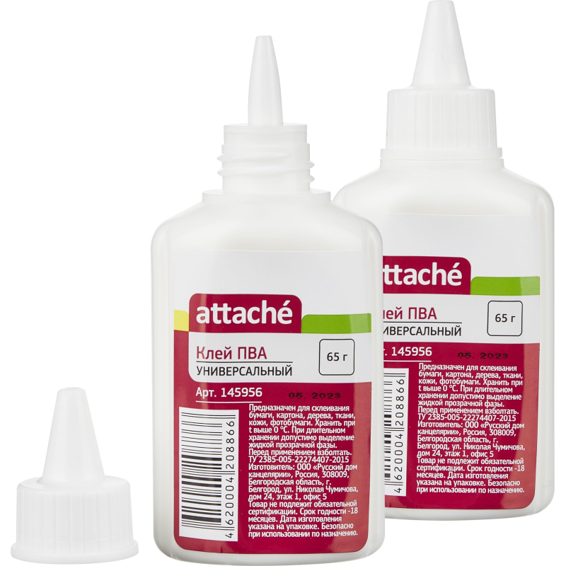 Клей ПВА Attache предназначен для склеивания бумаги, картона, дерева, ткани, кожи, фотобумаги. Отлично подходит для хобби и творчества для взрослых и детей. Пластиковый дозатор обеспечивает точное нанесение и экономный расход. Имеется съемный колпачок, который предохраняет клей от засыхания. Объем клея 65 г (64,3 мл). Клей ПВА при минусовых температурах замерзает, т.к. сделан на основе воды, но при оттаивании не теряет своих свойств.