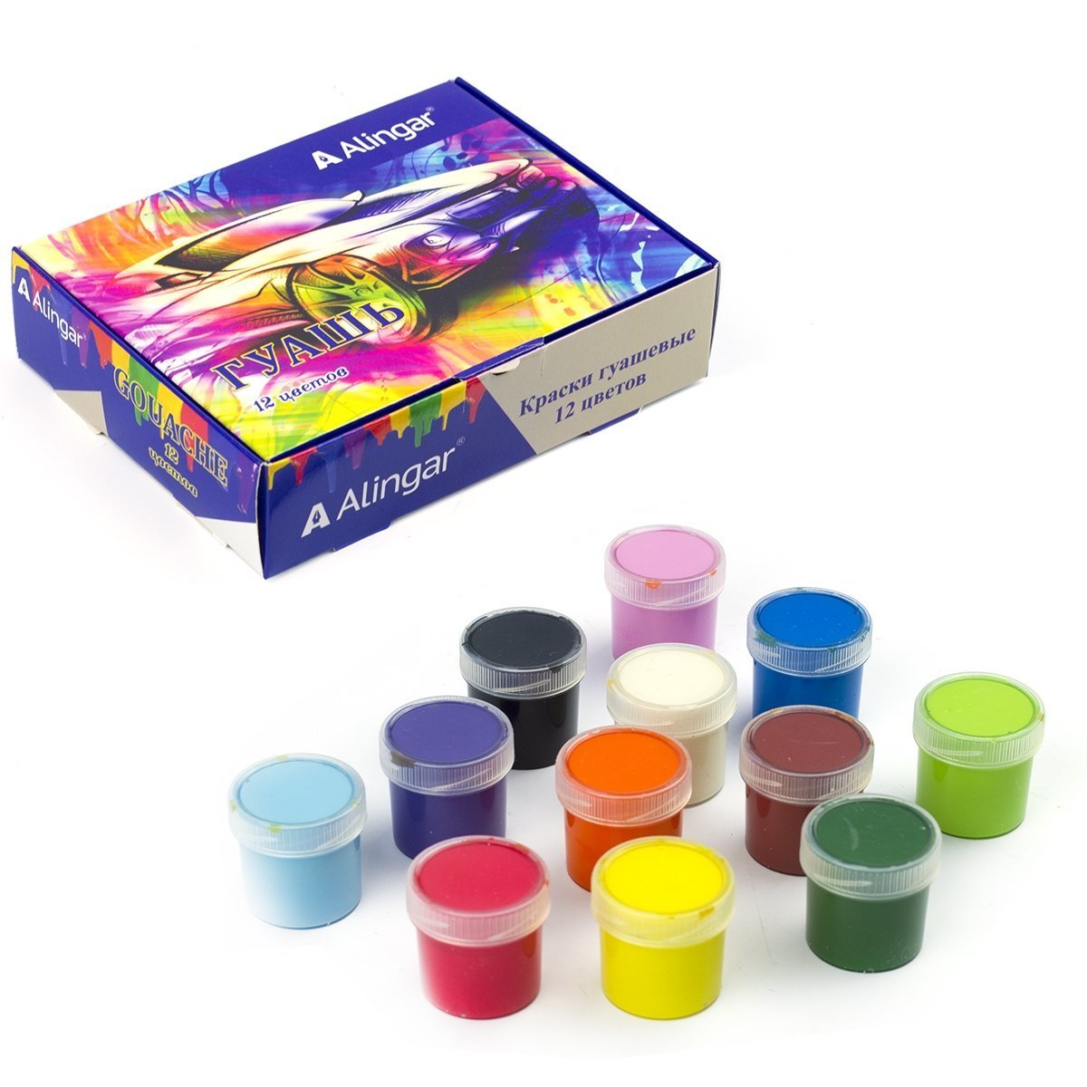 Краски гуашь 12цв*20мл Alingar Авто AL6796