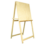 Традиционная модель мольберта, предназначена для выполнения акварельных работ, рабочая поверхность выполнена из фанерного щита, поэтому мольберт не нуждается в дополнительном планшете. Размер рабочей поверхности 60*60 см, угол наклона фиксируется стопорной планкой в пяти положениях от 60 до 80 градусов. В нижней части планшета прикрепляется полка для канцелярских принадлежностей (кисть, карандаш, ластик), которую можно использовать для установки картона.