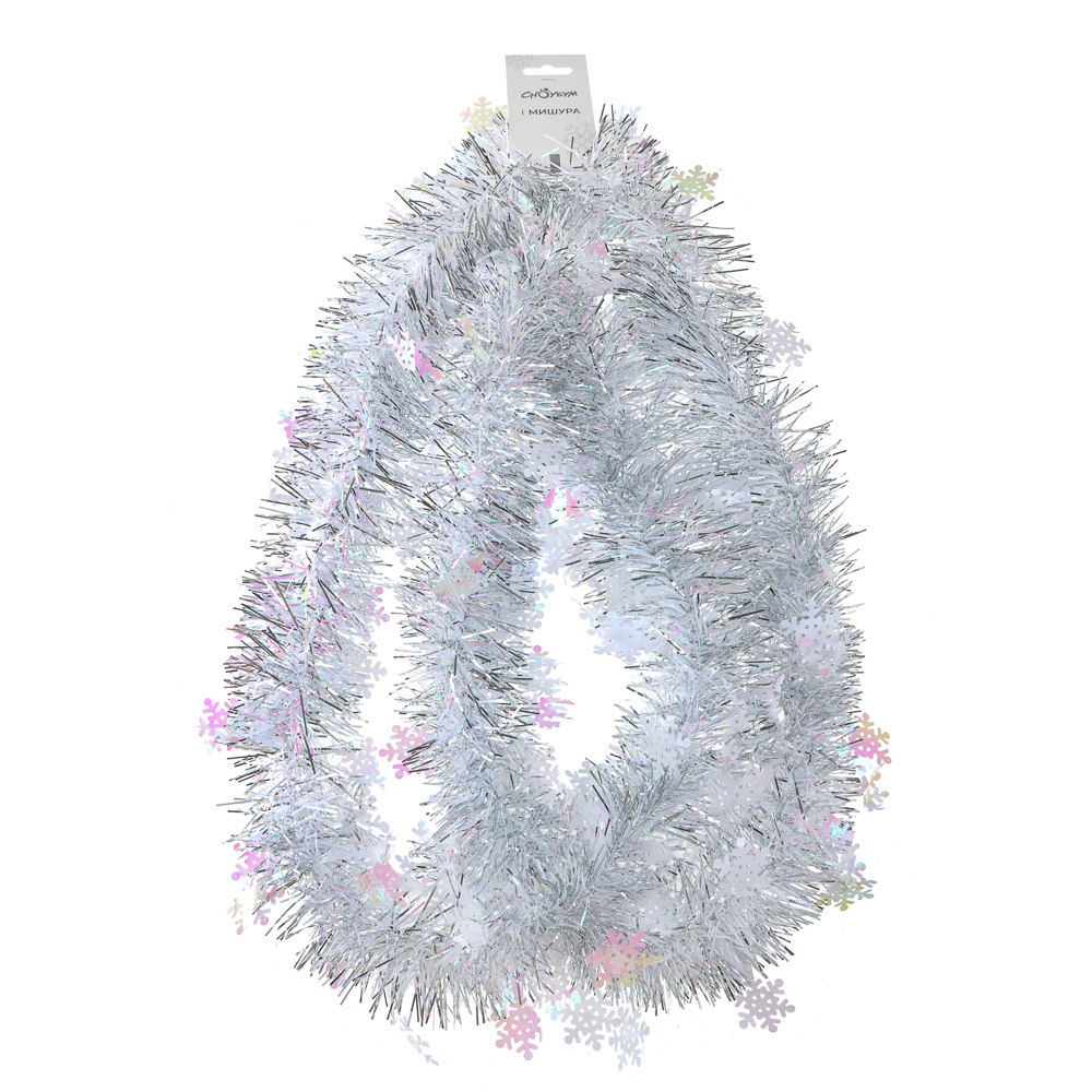 Мишура СНОУ БУМ 8х200 см – волшебное новогоднее украшение, которое превратит ваш дом в зимнюю сказку! Сверкающая серебристая мишура с голографическим эффектом и декором из снежинок создана из высококачественного ПЭТ-материала, который отличается прочностью и долговечностью. Ширина 8 см и длина 2 метра делают ее идеальной для украшения елки, создания праздничных гирлянд, декорирования дверных проемов, окон или оформления новогоднего стола. Голографическое покрытие с изящными снежинками переливается и играет на свету, создавая эффект настоящего зимнего волшебства, а серебристый оттенок прекрасно сочетается с любыми цветами новогоднего декора. Благодаря гибкости материала мишура легко принимает нужную форму, позволяя воплощать самые смелые дизайнерские идеи. Особенно эффектно она смотрится в сочетании с синими, белыми и фиолетовыми украшениями, дополняя зимнюю тематику праздника.
