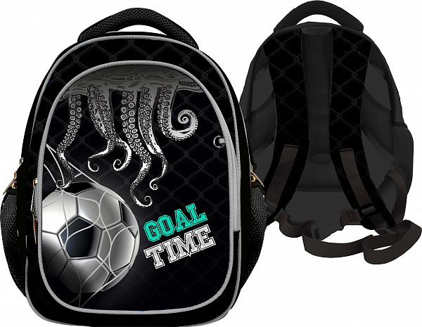 Рюкзак облегченный "Goal time". Удобный, практичный, а главное долговечный рюкзак соответствует всем заявленным нормам качества и безопасности. Изготовлен с максимальной заботой о детском здоровье, оснащен эргономичной анатомической спинкой. Данная особенность позволяет равномерно распределить нагрузку по позвоночнику, тем самым предотвращая нарушение осанки, обеспечивая максимальный комфорт при носке. Прочные материалы и качественная фурнитура обеспечивают надежность и долговечность. Мягкие широкие лямки легко регулируются по длине и высоте, позволяя подгонять рюкзак под индивидуальные размеры ребенка. Для дополнительной фиксации имеется застежка спереди. Два отделения дополнены молниями с двойными бегунками. Внутри расположены дополнительные отделения и органайзер для мелочей. Толстая текстильная ручка удобна при переноске в руках. Также имеется петля для подвеса. Для безопасного передвижения в темное время суток, модель оснащена светоотражающими элементами в дизайне. Полноцветная печать обеспечивает яркое и четкое нанесение изображения, устойчивого к выцветанию и деформации. Размеры: 40*32*16 см. Материал - полиэстер.